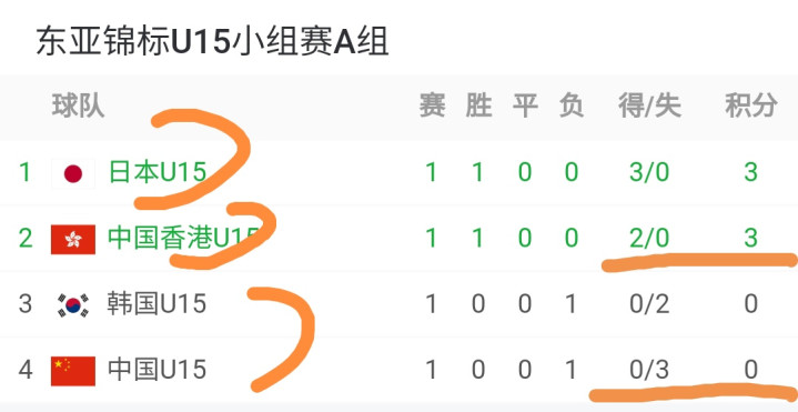 而中国香港队仅以一个净胜球的差距紧随日本排在了第二的位置上,日本队领跑。