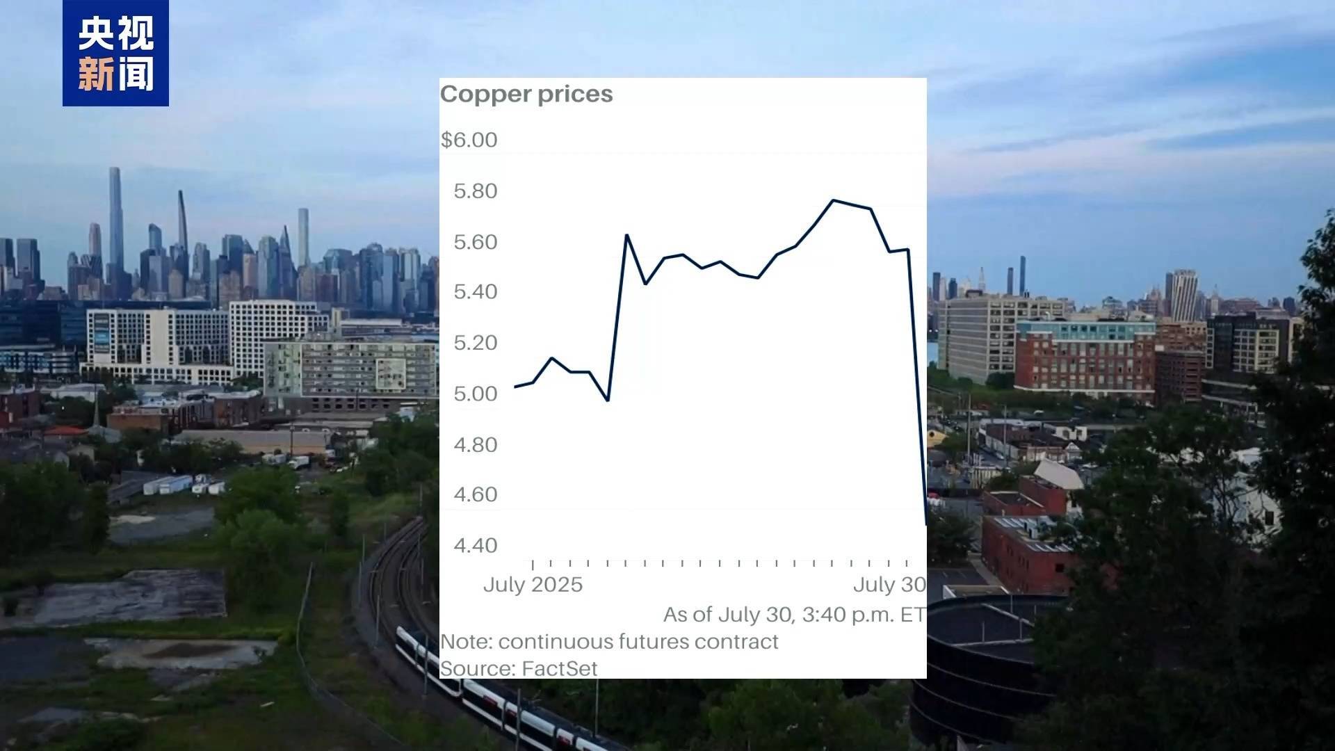 就在白宫消息公布后,7月30日,纽约商品交易所的铜期货价格一天内暴跌20%。此前,美国铜价一直高于伦敦金属交易所基准铜期货价格约28%。